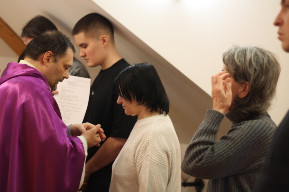 Кульминацией богослужения стало таинство возложения пепла. Верующие были приглашены к Алтарю. И когда священник, держа в руках блюдце с пеплом, произносил слова из Писания, призывающие к покаянию и напоминающие о бренности человеческого существования: «прах ты и в прах возвратишься» (Быт. 3:19), в храме царила глубокая тишина. Каждый член прихода получил на чело знак креста, начертанный пеплом. Этот простой, но мощный жест стал символом: